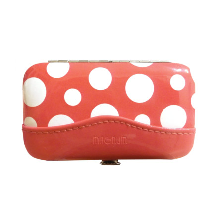 Sada je uložena v pevném, designovém pouzdře se vzorem bílých puntíků – spojení krásy a praktičnosti.